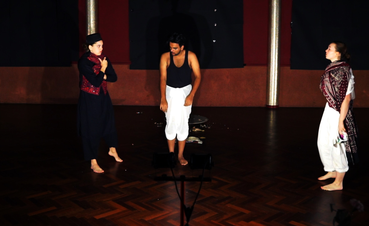The actions between the performers outline a chain of influence. Victoria’s circular motion is a metaphor for the grip with which the British Raj executed a chokehold over the subcontinent. The authority lingers through the gestures of the others, and the commoner’s position shifts according to the balance of power between Gandhi and Jinnah. The work focuses on the mechanisms through which British governance shaped relationships on the subcontinent, and on how those mechanisms continued to structure political and social conditions long after formal rule ended.